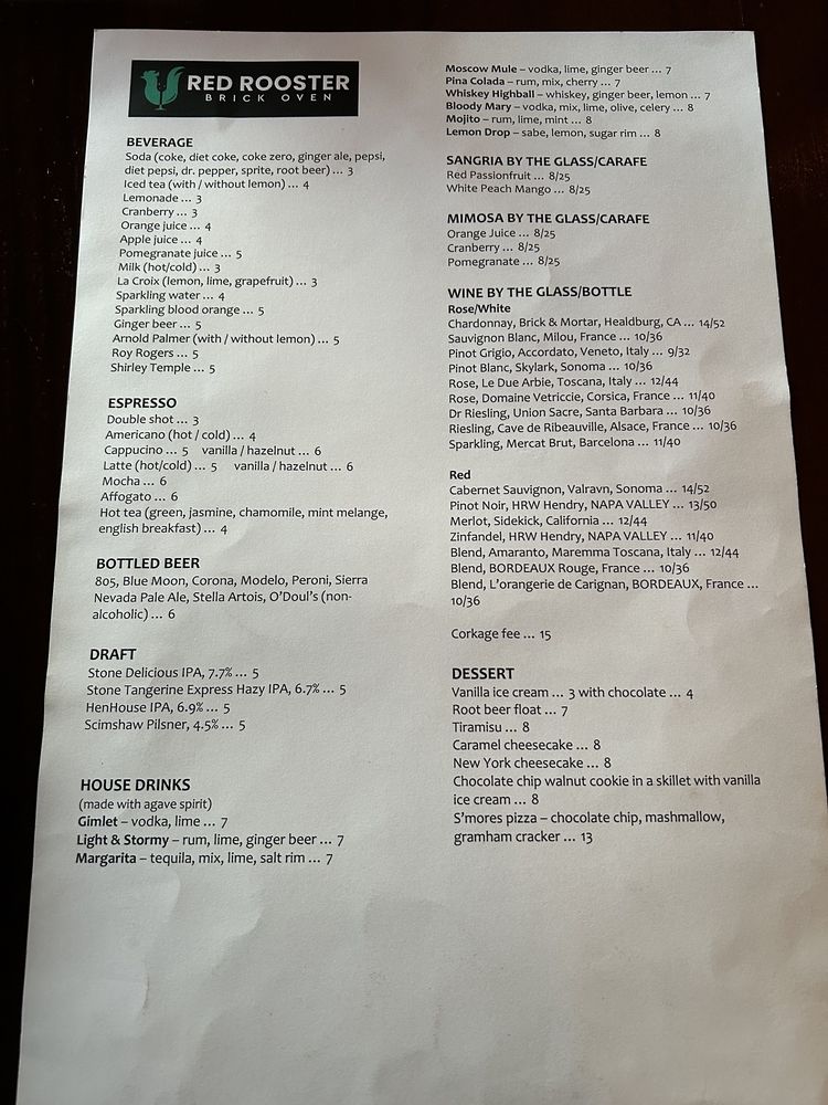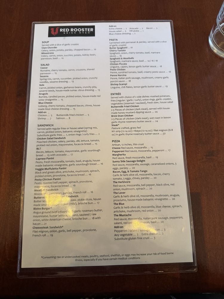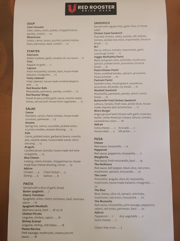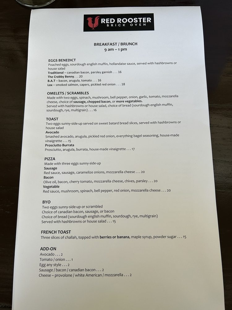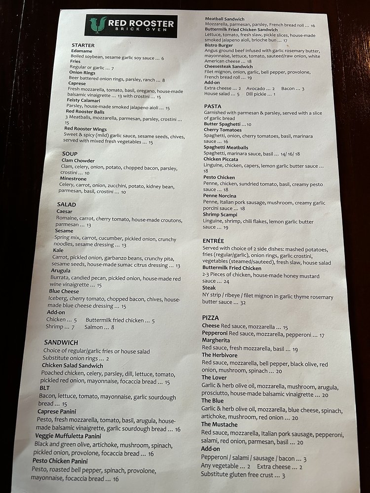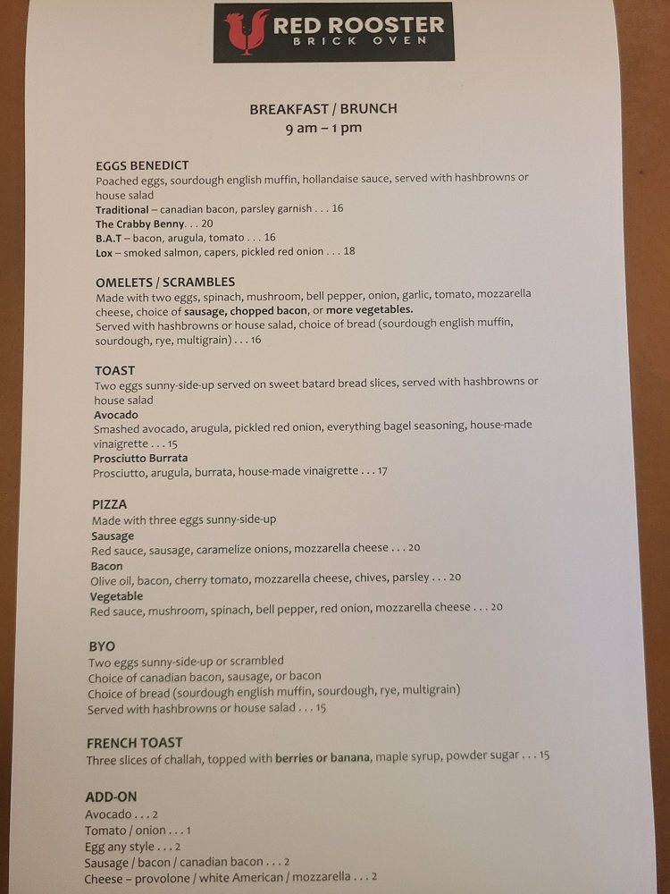Red Rooster Brick Oven Menu