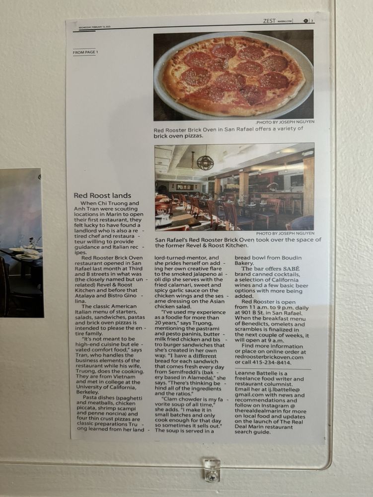 Welcome to Red Rooster Brick Oven, a delightful eatery nestled in San Rafael, CA, specializing in mouthwatering pizzas and delectable sandwiches. This Asian and women-owned restaurant offers a cozy ambiance, making it perfect for dining with family and friends.